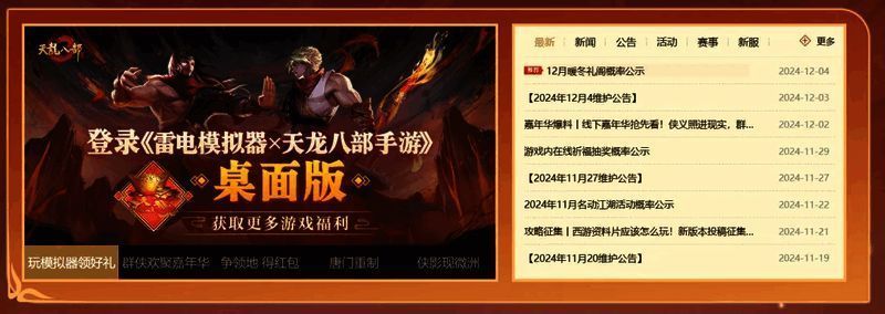 第一步:少侠只需在天龙八部官网(点击此处跳转官网),点击如图所示的横幅下载桌面版(请在PC端下载);