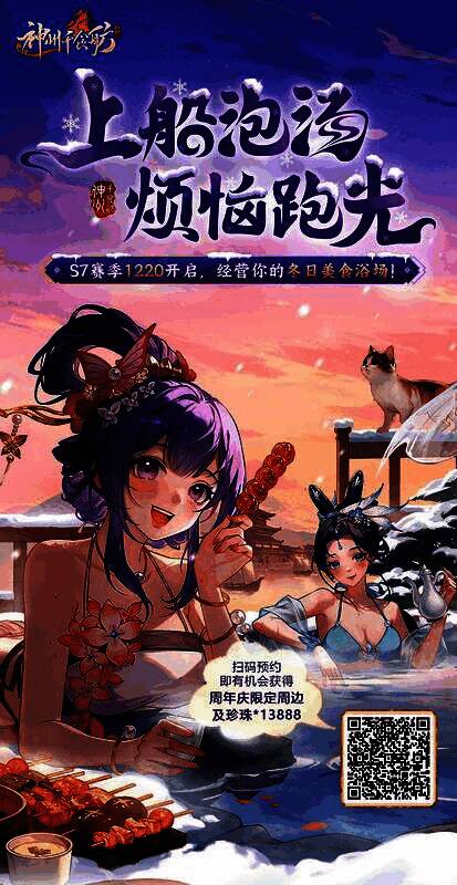 冬日赏新雪,泡汤正当时!1周年预热&S7赛季「冬日泡汤」版本将于12月20日开启,神州舫会邀你上船泡澡~