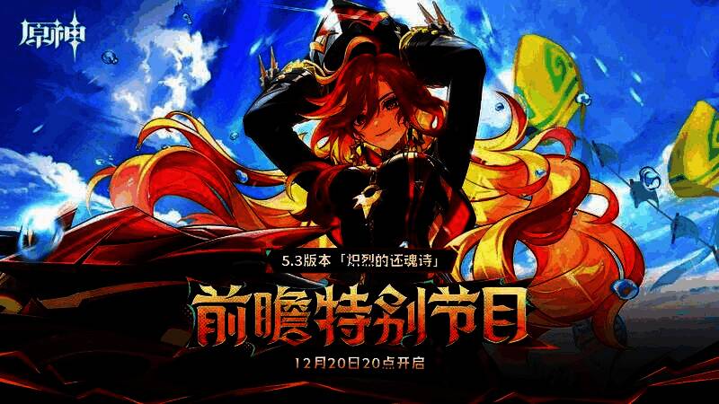 《原神》5.3版本「炽烈的还魂诗」将于2025年1月1日上线。12月20日,《原神》5.3版本前瞻特别节目正式播出,为各位旅行者带来关于新版本的丰富内容预告。新版本中,全新限定五星角色「焚夜以炎·玛薇卡(火)」、全新限定五星角色「白星黑曜·茜特菈莉(冰)」,全新四星角色「翦玉编春·蓝砚(风)」将加入游戏。与此同时,限定五星角色「孤暝厄月·阿蕾奇诺(火)」和「秉烛狝影·克洛琳德(雷)」将迎来返场,全新集录祈愿也即将开启。