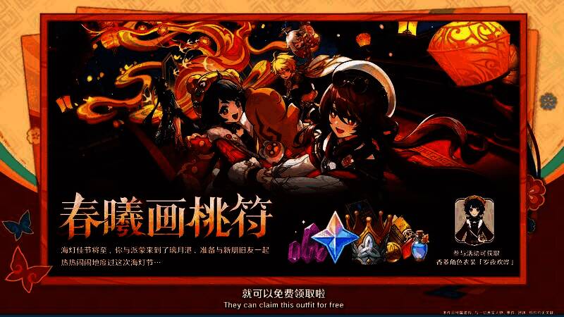 璃月海灯节庆典也将在5.3版本上线。新版本中,各位旅行者可以领取包括10枚纠缠之缘和1600原石在内的奖励,另外参与活动可以免费邀请一位璃月四星角色加入队伍,以及免费获取香菱的「岁夜欢桦」全新衣装。同时,胡桃的全新衣装「宿雪桃红」也将进入商城。