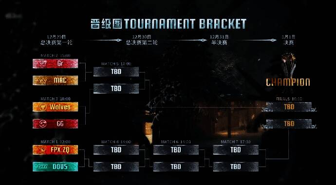 2024IVL秋季赛总决赛将于【12月9日-1月1日】进行,总决赛的赛制为BO5混合冒泡赛。总决赛第一轮共3场比赛,共6支战队参与,第一轮的对阵分别是:常规赛积分第1名对阵常规赛积分第4名,常规赛积分第2名对阵常规赛积分第3名,以及常规赛积分第5名对阵常规赛积分第6名,且常规赛排名较高的队伍拥有主场优势。每轮对阵的胜者晋级下一轮比赛,败者依据常规赛排名进入相应轮次或淘汰,最终突出重围的两支队伍将在【1月1日】荣耀会师,展开巅峰决战。