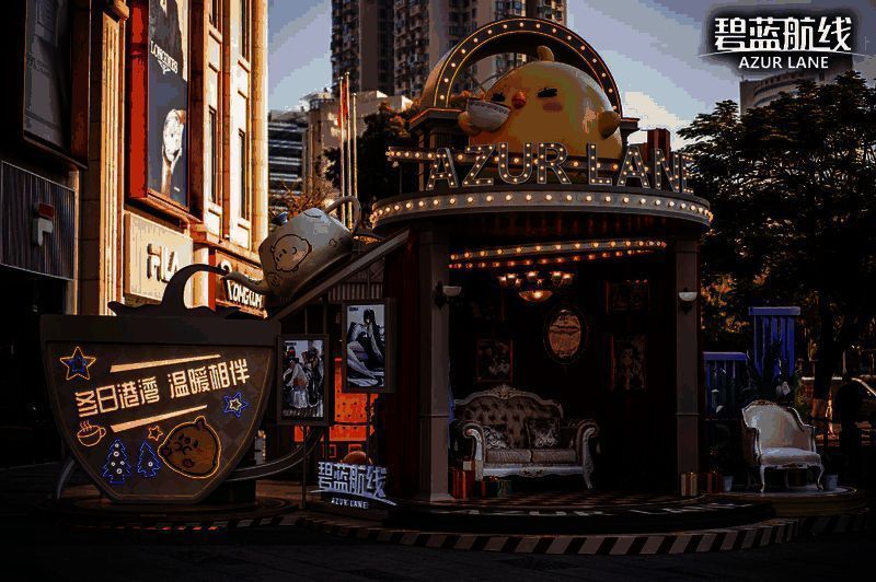 成都站一马当先,厦门站也不甘落后。同样在12月21日,碧蓝航线冬日快闪咖啡馆厦门站在厦门中华城南门旁室外场地揭开神秘面纱。这个充满童话色彩的主题咖啡馆展区为指挥官营造出一个梦幻的节日场景,巨大的黄鸡坐在屋顶上喝着咖啡,环绕着红色墙帘的房间里错落着典雅的欧式沙发和座椅,墙上挂着《碧蓝航线》精美的画作,旁边当然少不了碧蓝航线角色立牌的陪伴。