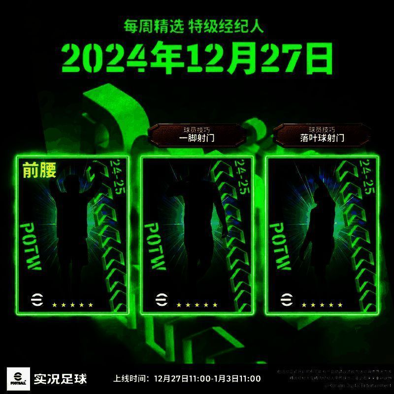 【每周精选 特级经纪人(12.27~1.03)】明日上线,你将有机会获得本周在赛场表现优异的精选球员。