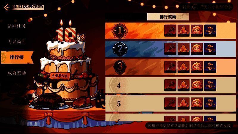 全服船长都将参与蛋糕制作,通过大家的共同努力,推动蛋糕的制作进度条,解锁丰厚的全服奖励!想要10周年生日礼包?想要凯多碎片?想要SSS伙伴自选礼包?那就快快行动吧!每一个进度,都是我们齐心协力的结果!参与制作的船长们不仅能获得丰厚的成就奖励,还能进入全服排行榜!进入全服排行榜前列的船长,将获得宝藏钥匙、魂玉洗练石等惊喜奖励!