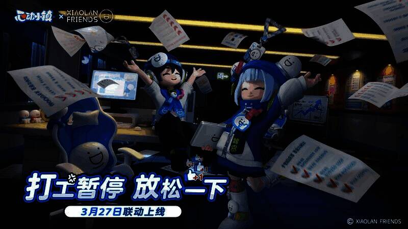 继线条小狗、宛平南路600号后,又一个主打搞笑温馨、专治打工人的IP——《小蓝和他的朋友们》在今天正式进驻《心动小镇》!一系列高度吻合打工人精神状态的联动内容现于3月27日正式开启,让我们戴上工牌、换好工装、停下手上的工作,用《职场甩锅操》来迎接即将到来的周末与这全新的联动!