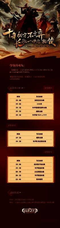 十年英魂,情怀依旧。线上线下福利满满,更多惊喜等你挖掘!《英魂之刃》官方已发出活动邀请函,更有知名Coser到场,快来加入这场十年狂欢,一同书写与《英魂之刃》的新篇章!为大家附上线下赛活动节目单,1月10日,上海忠诚智谷星秀场,我们不见不散!