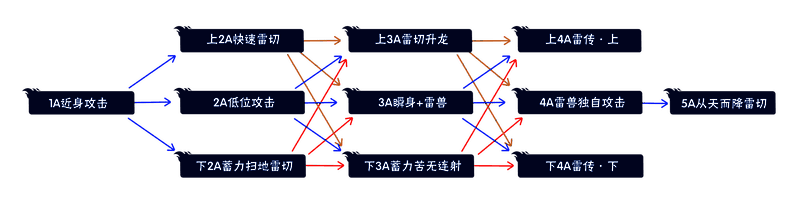 小编小贴士:普通攻击和上下特殊普攻在1A到4A之间可以自由衔接,在打完上/下特殊普攻4A雷传后没有后续,简单来说就是以下两种情况:
