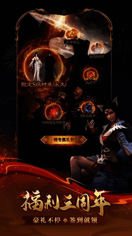 作为三周年的重头戏,福利豪礼当然够多够满,拿到手软!除了空前力度送出永久时装、永久背饰、永久坐骑、限定头饰等牌面限定外观外,更有大月卡通天令、3888仙魔转职符、S级英魂整卡和海量道具,帮你精炼、魂石、镌刻轻松无忧,轻松过门槛,畅享完美大陆精彩体验。除此之外,周年福利更可和新服活动与签到活动叠加!当年人人称羡的金毛狮王和拉风橙装签到即领,魂石、天书、精灵、坐骑、时装,共有价值超3W+绑元的顶级礼包无门槛领取,保送战力提升,轻松体验游戏全部核心玩法!