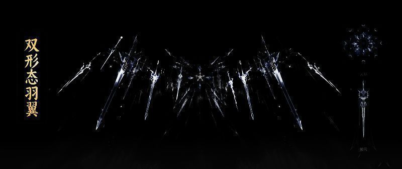 【羽翼·剑来开天】亦霸气不减,剑翼凌空,绽于苍茫,以上古神兵灵韵所化的利剑,从中心向两侧延展,整齐而庄严。剑身剔透似有流光婉转,剑刃则锐利非常,似携天地之正气,隐隐生威。中心之处暗藏玄机,若灵泉涌动,汇聚无尽剑意,又如璇玑运转,周天星辰皆为之呼应!