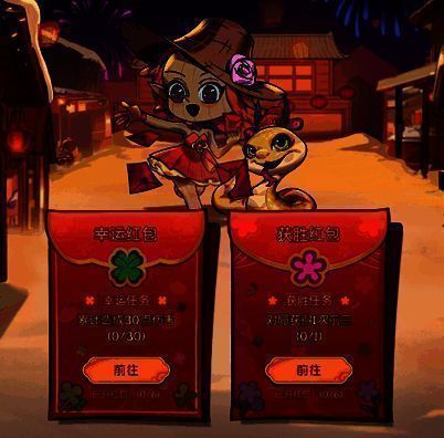 新年开红包,吉祥如意绕!1月30日00:00~2月10日23:59前往游戏中完成完成幸运任务/获胜任务,可开启幸运红包/获胜红包,两种红包,双份大礼。开启红包可获得随机奖励:珍藏棋盒,南瓜币,互动礼物。累计完成固定数量的任务还可领取更多神秘奖励。
