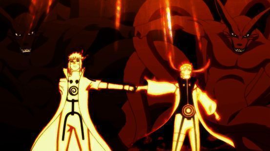 在《火影忍者:忍者新世代》中,水门[九尾查克拉模式]把水门与鸣人并肩作战的场景完美还原!两人一起使出了帅气招式“尾兽联弹”!