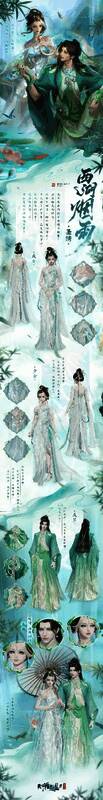 行走时外层衣料如幽潭泛起涟漪,鳞状暗纹在特定角度显现,似有蛇影从深水中惊鸿一瞥。当夜风灌满广袖,整件衣裳便化作流动的翡翠星河,微光细闪下如幽潭之水色。