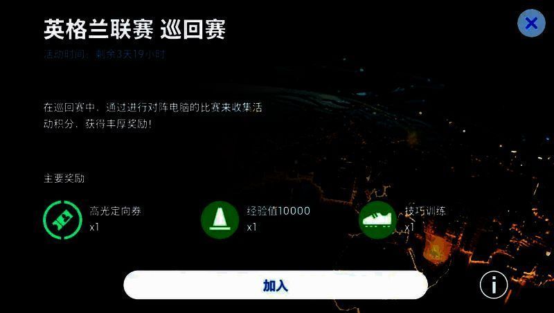 参与【英格兰联赛 巡回赛】活动,你将迎战联赛中的各支球队,通过完成比赛可以积累一定数量的巡回赛积分,达到一定的积分,可以获得【高光定向券】和【金币】等奖励。