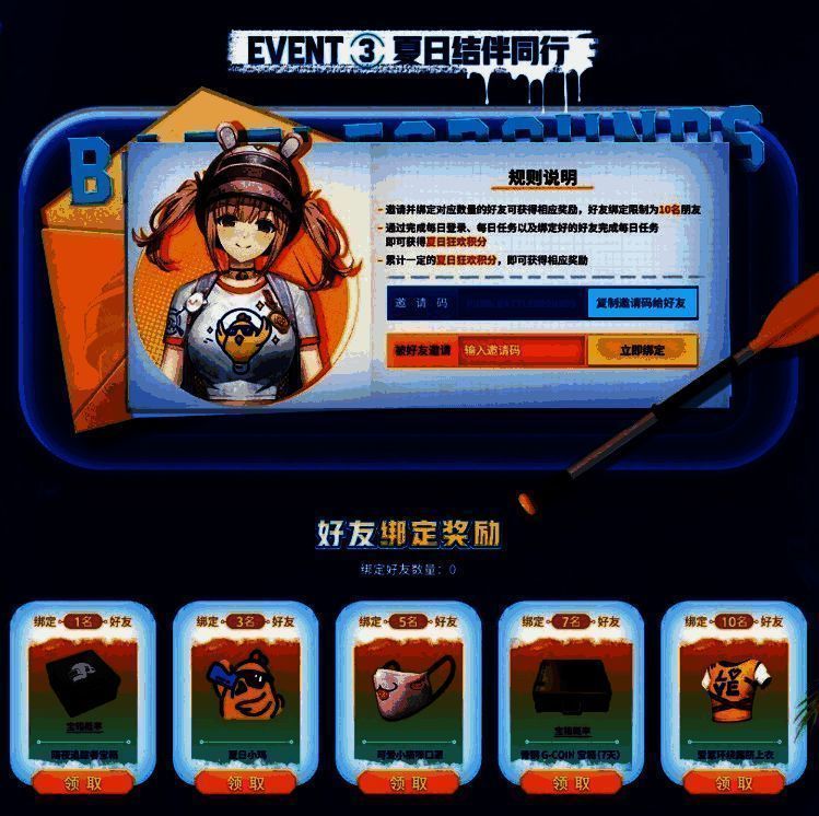 活动3:夏日结伴同行,邀请并绑定最多10名同行好友,不仅有夏日小鸡,可爱小猫咪口罩,还有最新的道具爱意环绕露脐上衣可以领取!