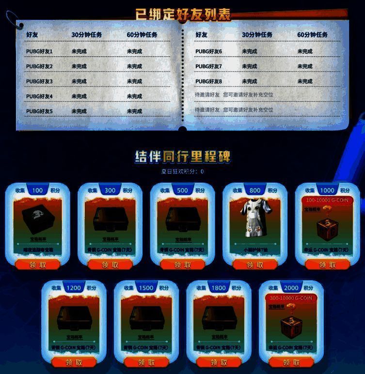 好友完成游戏时长任务也可以给自己增加夏日狂欢积分,收集到对应数量的积分可以领取道具,不仅有最新的小猫护体T恤,还有幸运G-Coin宝箱,可随机开出300-10000G-Coin,最幸运的人会不会就是你!
