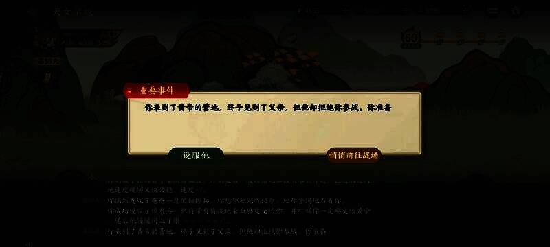 这里选择说服他,选择悄悄前往战场会失败