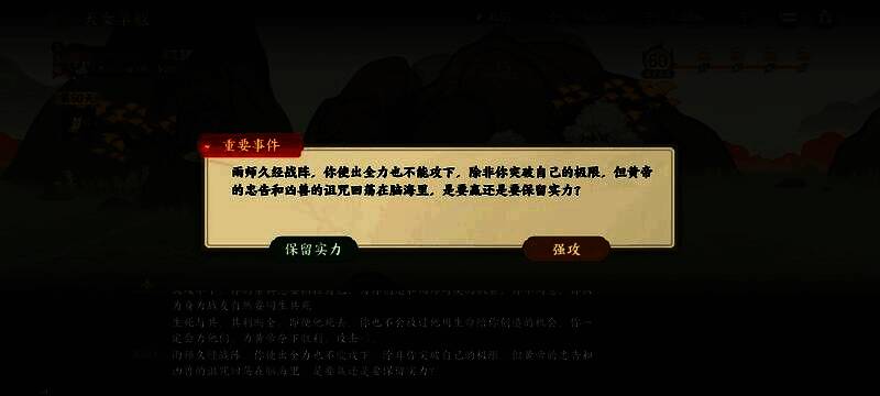 这里选择强攻就通关了,选择保留实力会失败,不过会有一个成就