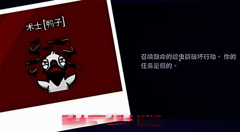 术士这个身份的初始状态其实和普通的鸭子一样,只有刀人的能力,只有把指定的狼人任务给完成,才能解锁术士这个特殊的身份,解锁以后,术士就有了一个名为召唤蝗虫群的核心技能,这是一个能对大范围进行破坏的技能,该技能只能够在游戏进入刀结束倒计时的时间段去使用。