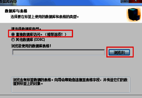 2、在弹出的“数据库向导”中,勾选择数据库类型。单击浏览按钮。