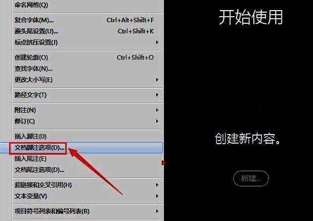 1.首先,打开InDesign软件界面后,点击文字菜单下的文档脚注选项按钮