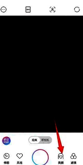 打开甜盐相机拍照页面,点开下方的美颜