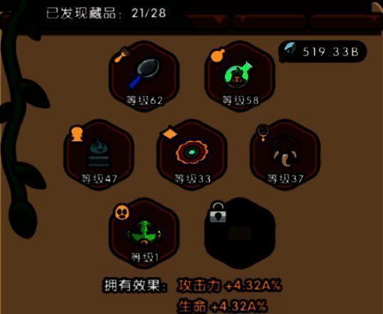 除了战斗,藏品也是游戏中的一大亮点。不同类型的藏品拥有不同的效果,选择合适的藏品能大大增强你的战力。例如,餐具藏品中的“死神餐刀”和“金饭碗”,是非常不错的选择,可以为你提供强力的加成。而雕像类藏品和面具类藏品,则可以根据你的角色需求进行选择,合理搭配,帮助你提升整体实力。