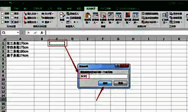 5、选择提取结果保存的单元格,点击确定。
