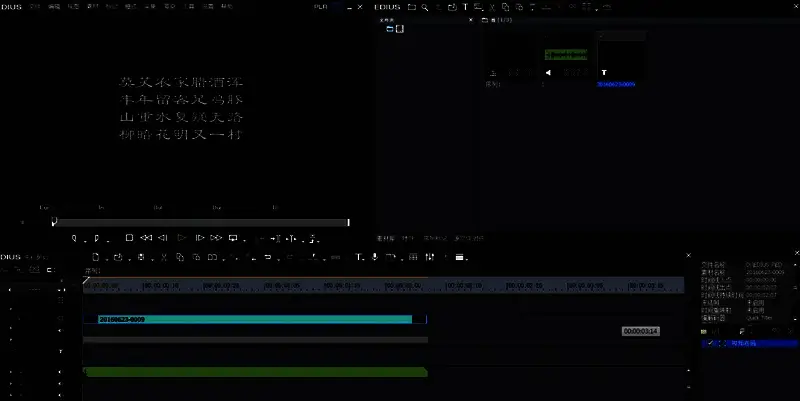 准备一个打字机打字的声音素材,导入到素材库中并拖拽到声音轨道上。 接下来就是让蚊子一个字一个字地出来。在素材库中新建一个字幕文件(点击素材库菜单上的“T”),在字幕编辑窗口中,书写并设置好自己想要写的字,最后点击左上角的保存即可。