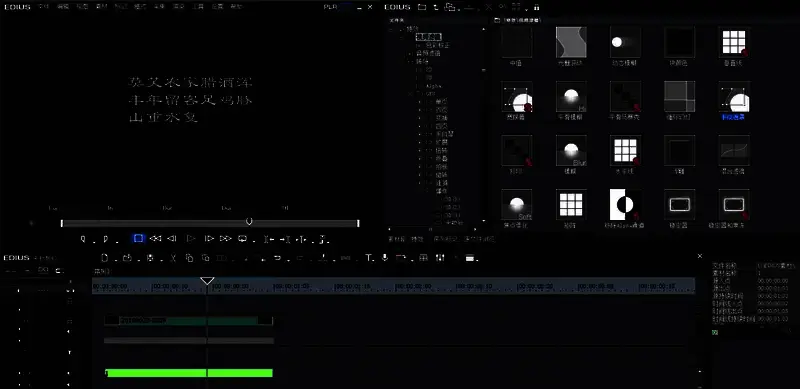 把它拖拽的视频轨道上,把它当做一张图片素材使用。然后在特效面板中找到“手绘遮罩”,把手绘遮罩拖到字幕素材上,双击信息面板里的“手绘遮罩”则进入其设置对话框。在这选择菜单上面的钢笔工具,把开始要出现的字用钢笔工具选好,在左边的菜单中选择“滤镜”外部,我们把可见度调整到“0”,此时在下方的开始出打上关键帧。这样一个字就出来了。移动关键帧的滑块位置,再选择钢笔工具的下拉选项,添加选择点,拉动选区的范围让第二个字也被选中,此时第二个关键帧将会被打上。这样以此类推一直到所有的文字都被选完。点击确定,配合声音播放一遍就是打字机打字的效果!