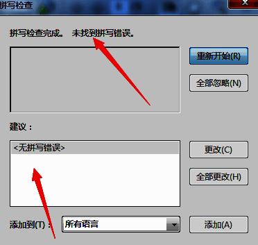 进行点击了检查之后,如果没有数据的话,就会提示无拼写检查错误。