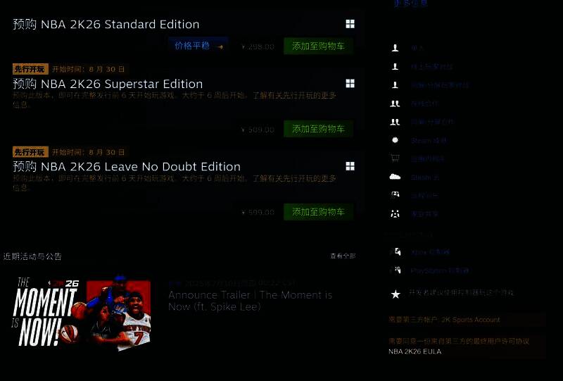 此外,外媒还注意到《NBA 2K26》当前Steam页面没有加入D加密说明,这像极了之前的《NBA 2K25》。当时,《NBA 2K25》开启预购时,Steam页面没有加入D加密说明,但当游戏发售后,2K在最后一刻加入了D加密。