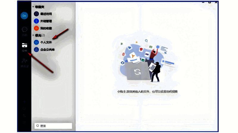 2、完成注册之后,登录自己的账号,点击左侧列表中的“文件”选项,再在右侧点击“个人文件或是企业公共库选项”。