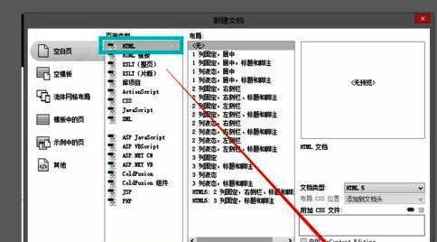 这时单击文件-》新建,页面类型选择html,点击创建即可创建一个空白页面出来了。