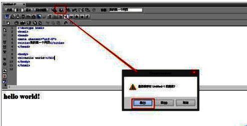 我们再点击顶部的小地球图标可以在浏览器中预览,会提示是否保存页面,点击是。