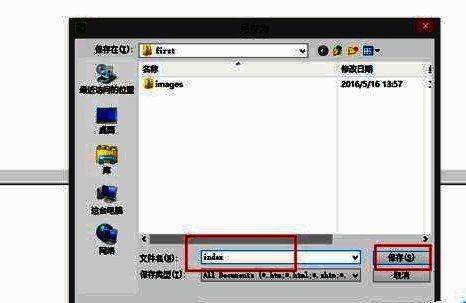 最后我们选择保存的名称一般情况下网页的首页都叫index,将名称更改后确认即可在浏览器中看到刚才的成果啦。