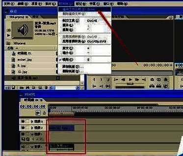 注意:声音要拖放到音频轨道,视频和图片要拖放到视频轨道,可以放在同一轨道,也可以放在不同轨道。