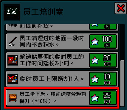 新版本中,制作组针对玩家之前提供的一些反馈更新了游戏本体内容 —— 小动物们工作久了需要休息!员工培训室如今新增了可解锁升级项,闲置员工会自动到附近的椅子坐下来休息。而随着培训等级的提升,休息后员工还能短暂提升移动速度。工作辛劳,大家也多在工作中回回血吧。