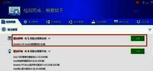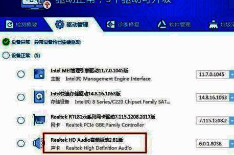 驱动精灵检测完成后我们就可以在驱动管理处看到我们电脑上安装的驱动了,如果能检测出来有安装声卡驱动的话。