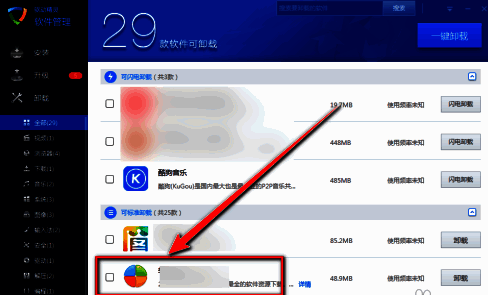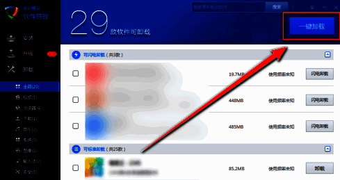 点击右上角的“一键卸载”。