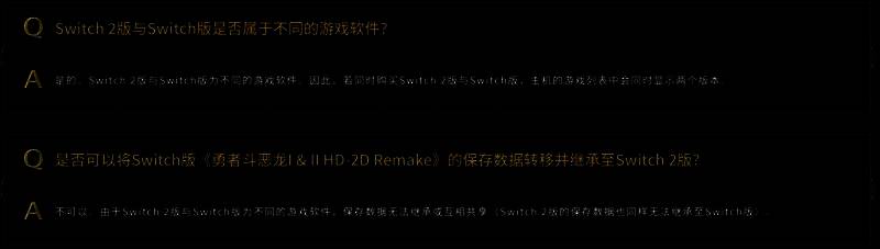 史克威尔艾尼克斯(SE)宣布,《勇者斗恶龙 I & II HD-2D 重制版》将于今年十月登陆Switch及Switch 2平台。官方最新发布的常见问题解答(FAQ)中明确了一项重要政策。