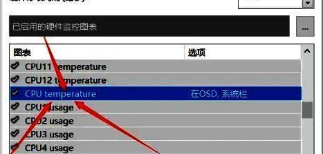 4.在监控列表中,寻找并选择"CPU温度"这一选项。