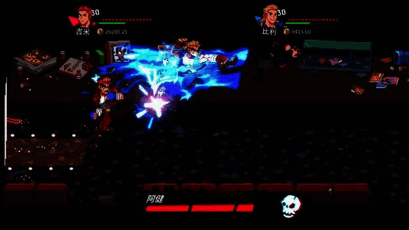 本作品为以动作游戏闻名的亚克系统与《桑塔》系列闻名的WayForward连手打造,结合生动的动画演出、漫画风格的幽默演绎、充满怀旧风的16位画风,以及合成器流行乐风格配乐,为玩家带来热血又充满节奏感的动作体验。