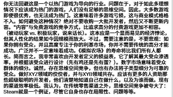 尽管这听起来像是行业注定走向失败的论调,Douse也提出了一些务实的成功策略:“如果你已经有自己的受众,并专注于自己的细分领域,你就不需要靠传统高分来取得成功。面向大众不一定意味着成功。《模拟农场》系列将比我们都活得久。”