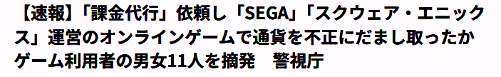 据悉,涉案嫌犯都是世嘉以及SE的热门网络游戏玩家,在2022年9月~2023年1月期间,通过第三方中介网站发布委托买卖游戏道具信息,通过代理者使用不正当手段骗取游戏公司高额游戏货币,之后按照一定比例支付给代理者佣金,本次案值近3000万日元。