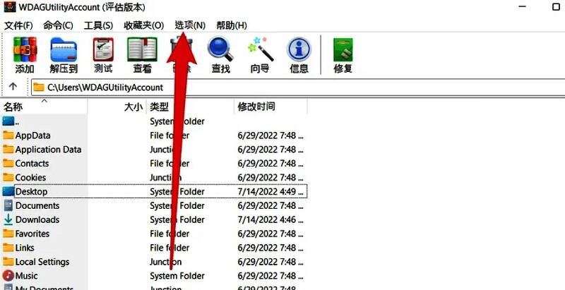 在WinRAR的主界面中,找到菜单栏,通常位于界面的顶部。点击菜单栏中的“选项”菜单。