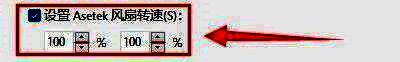 第五步:在“硬件监视工具”窗口中,勾选“设置Asetek风扇转速”,并设置风扇转速,如:设置为100%,100%(如图所示)。