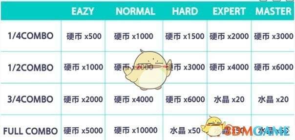 1、每首歌的【EASY】、【NORMAL】、【HARD】、【EXPERT】的四个难易度都会在获得歌曲时解锁。