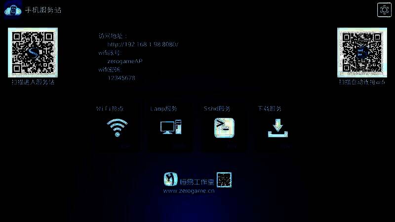 一个apk集成了wifiAp、lamp、ssh、bt,专为盒子设计,无需root权限,运行后自动启动,具备以下功能: