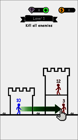 1、火柴人头顶有数字,数字比玩家大的对手难以战胜,击杀数字小的对手可吸收其数字。数字相同时,无武器角色打不过有武器角色。