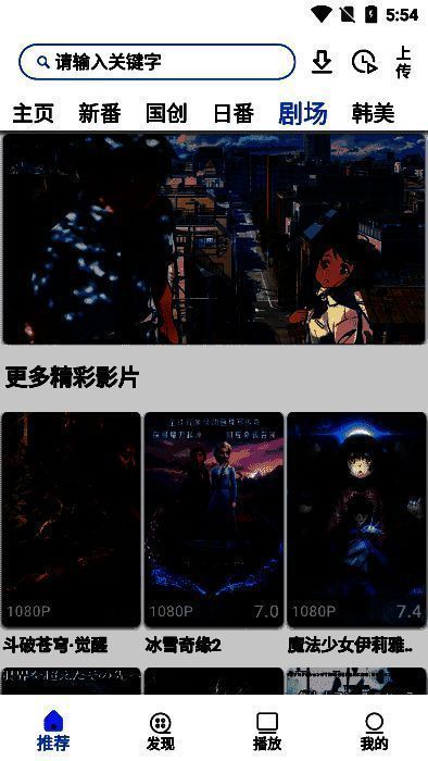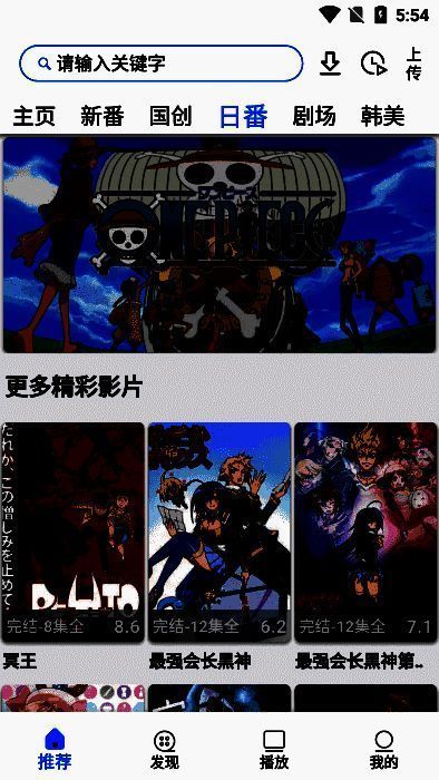 3. 新升级的智能推荐板块,每日推送不同的动漫和剧集。